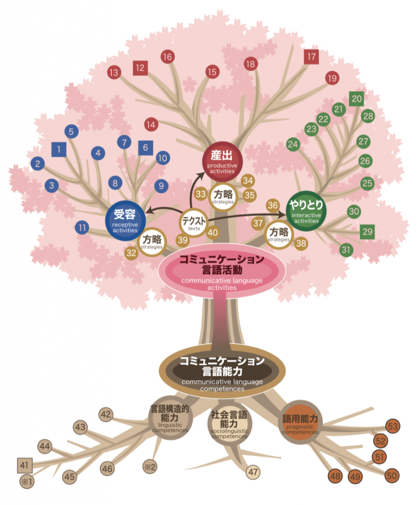 JF スタンダードのガイドブックでは、「JF スタンダードの木」によって、グラフィカルに CEFR の理論的背景を含めて Can-do ベースの教育について説明されています。
