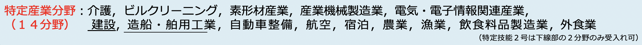 特定技能1号は専門的な分野とそうでない分野の間、2号は専門的な分野と同等という位置付けです。