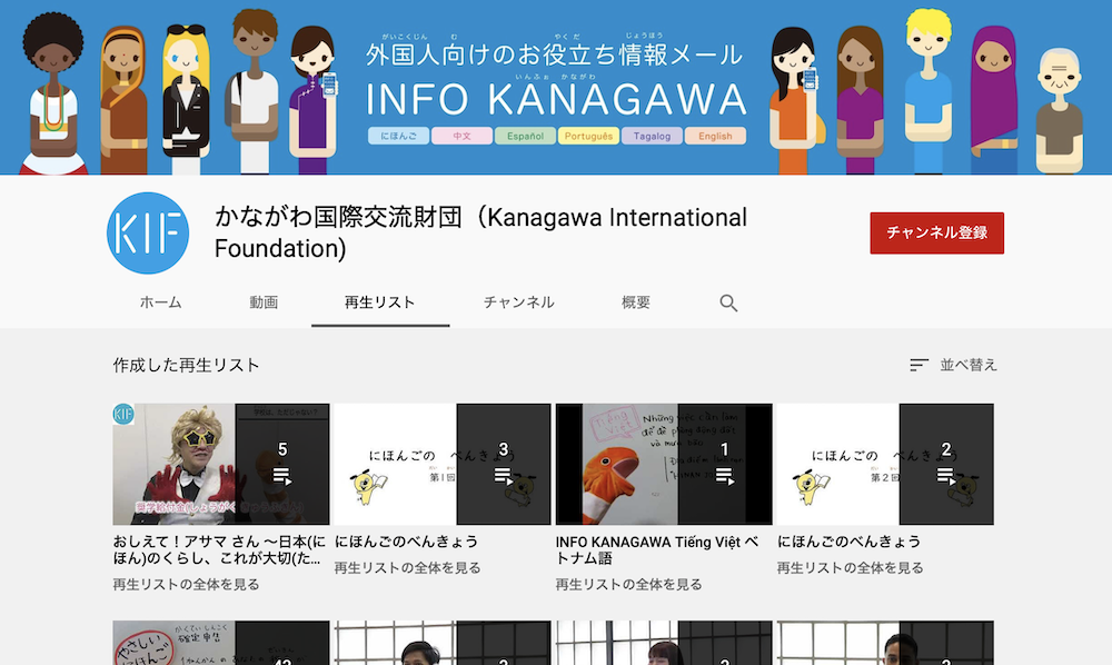 また、「神奈川」「国際交流」などで検索すると「かながわ国際交流財団」という団体が見つかりました。ここを見ると、かながわ国際交流財団は YouTube チャンネルももっていて、『にほんごのべんきょう』や『日本の子育て』という動画が公開されていることが分かりました。
