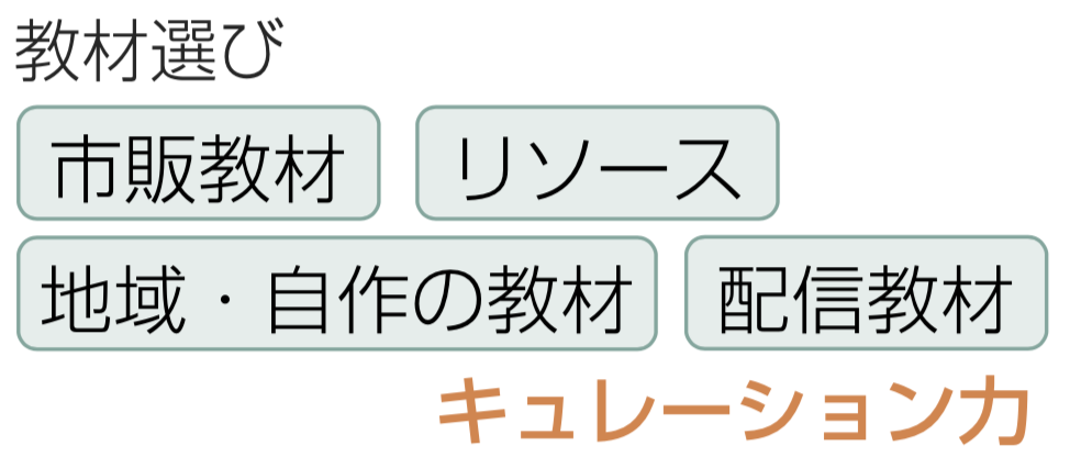 これらの様々な教材・素材を適切に選んで活用するには「キュレーション力 (りょく)」とでも言うものが必要です。日本語教育におけるキュレーション力というのは以下のようなものです。
