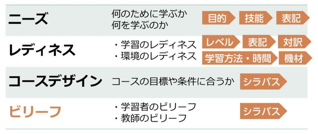 ニーズ・レディネス・コースデザイン・ビリーフ