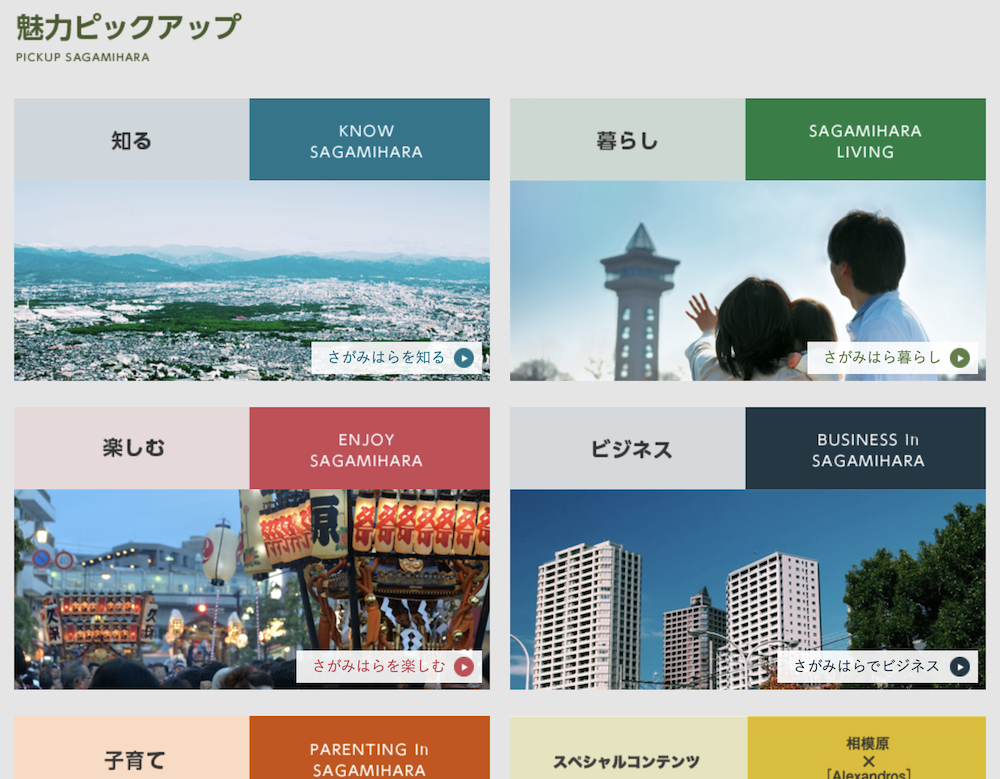 まずは先ほどの「B. 使えそうな話題や素材」を探してみましょう。相模原市のホームページを見てみると…。
