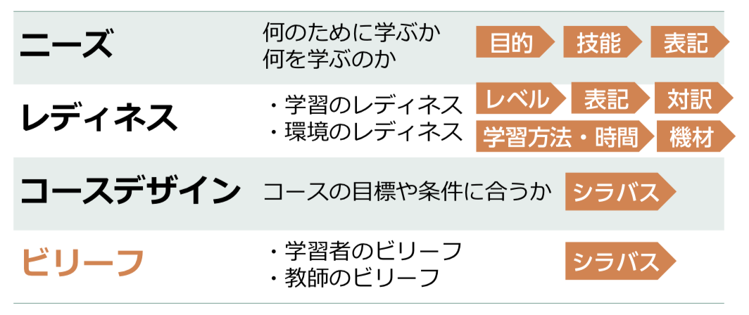 ニーズ・レディネス・コースデザイン・ビリーフ