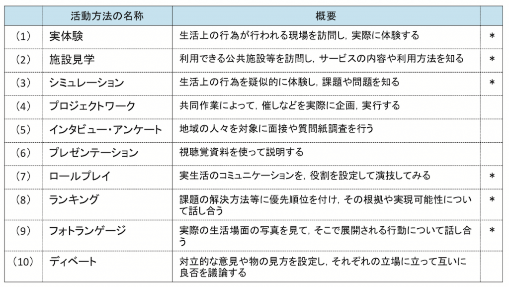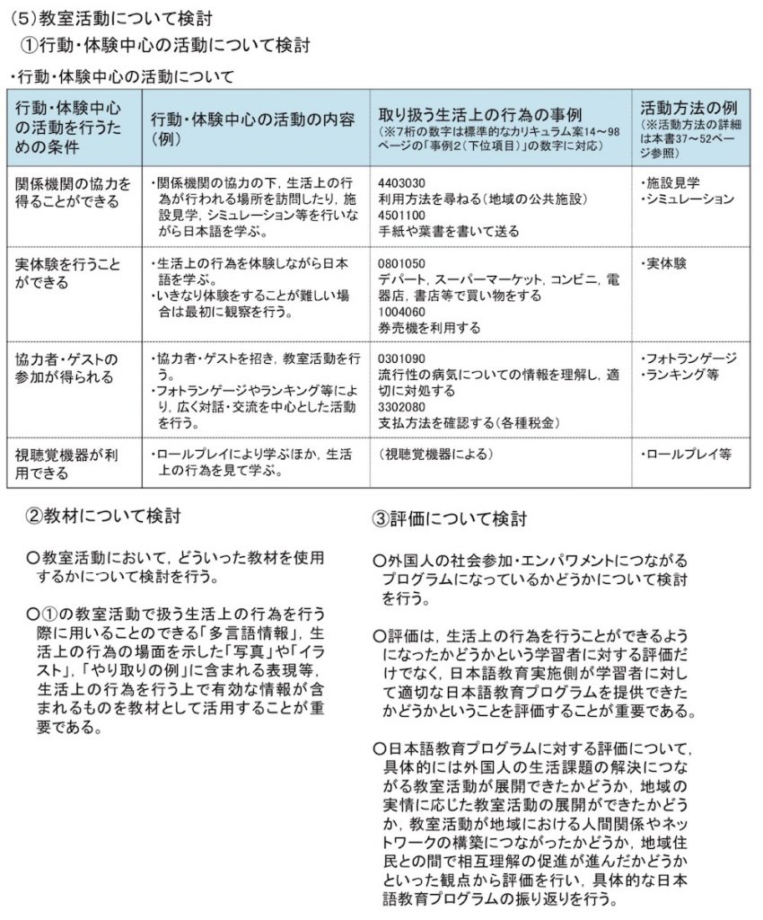 ここでは、1点目の資料である「「生活者としての外国人」に対する日本語教育の標準的なカリキュラム案について」を見てきました。見てきた通り、この資料は、学習者に学ばれるべきものが非常に詳しく整理されて記載されているため、教育プログラムの企画から実践、振り返りに至るまで、幅広く活躍するでしょう。