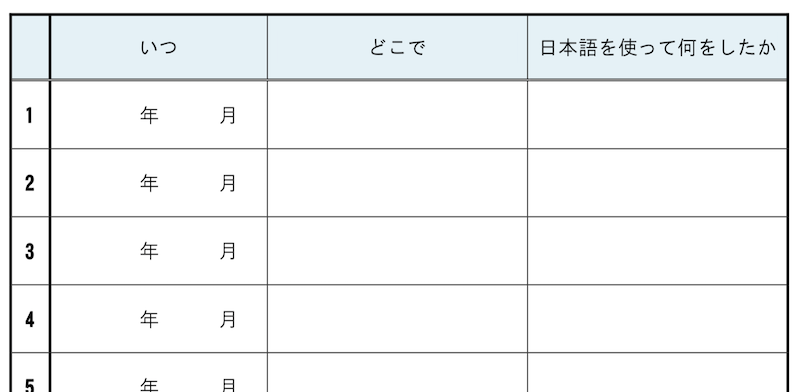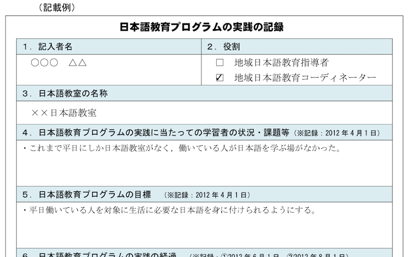 どのような日本語教育プログラムを実践したか、どういう目的で実践したか、また、成果はどうであったか、ということを書き込んでいきます。