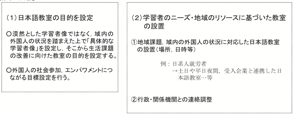 - (2) 学習者のニーズ・地域のリソースに基づいた教室の設置