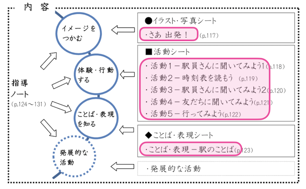 そのセットというのは、文化庁が作成した「標準的なカリキュラム案5点セット」と呼ばれるもので、それぞれが上で見た1〜5の各段階で活用でき、それらの内容について、詳細かつ具体的に説明されています。
