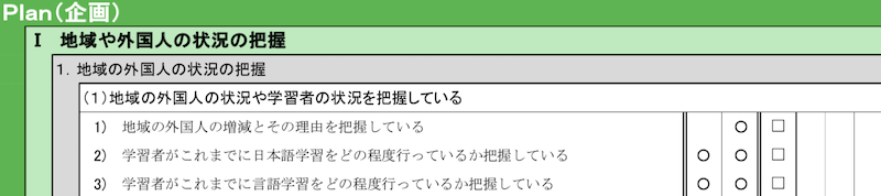 上の2で見たように、指導力だけでなく教育プログラムの運用の評価も含むため、地域の日本語教育を直接的に行う人だけでなく、教育プログラムの運営を行う側の評価もできるようになっています。