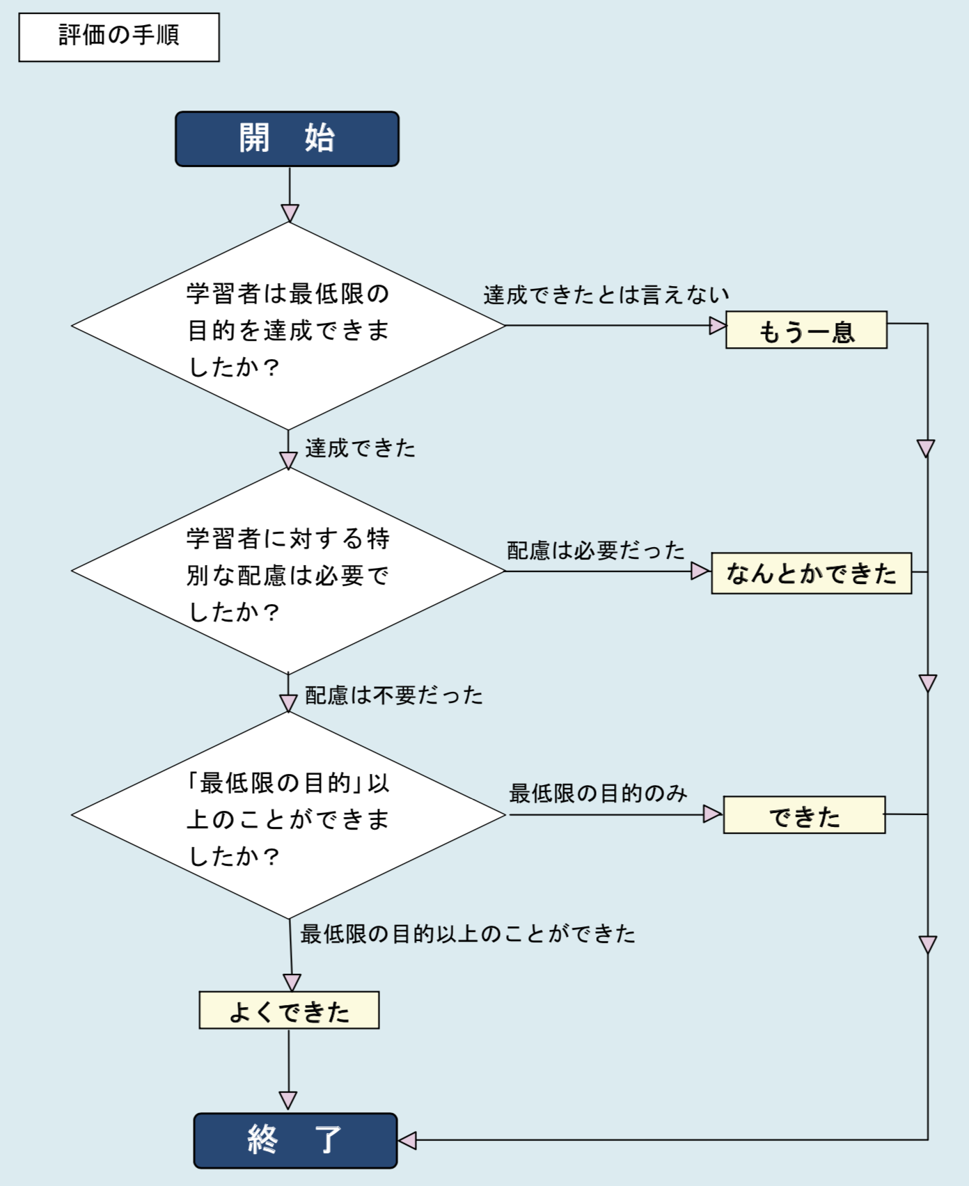 実際に教育の現場で、このような評価方法や評価の記述方法を行うことをイメージして、どんな点に注意して行ったらいいかを考えてみてください。また、難しそうだと感じたところなどがあったら、それも書き出してみてください。