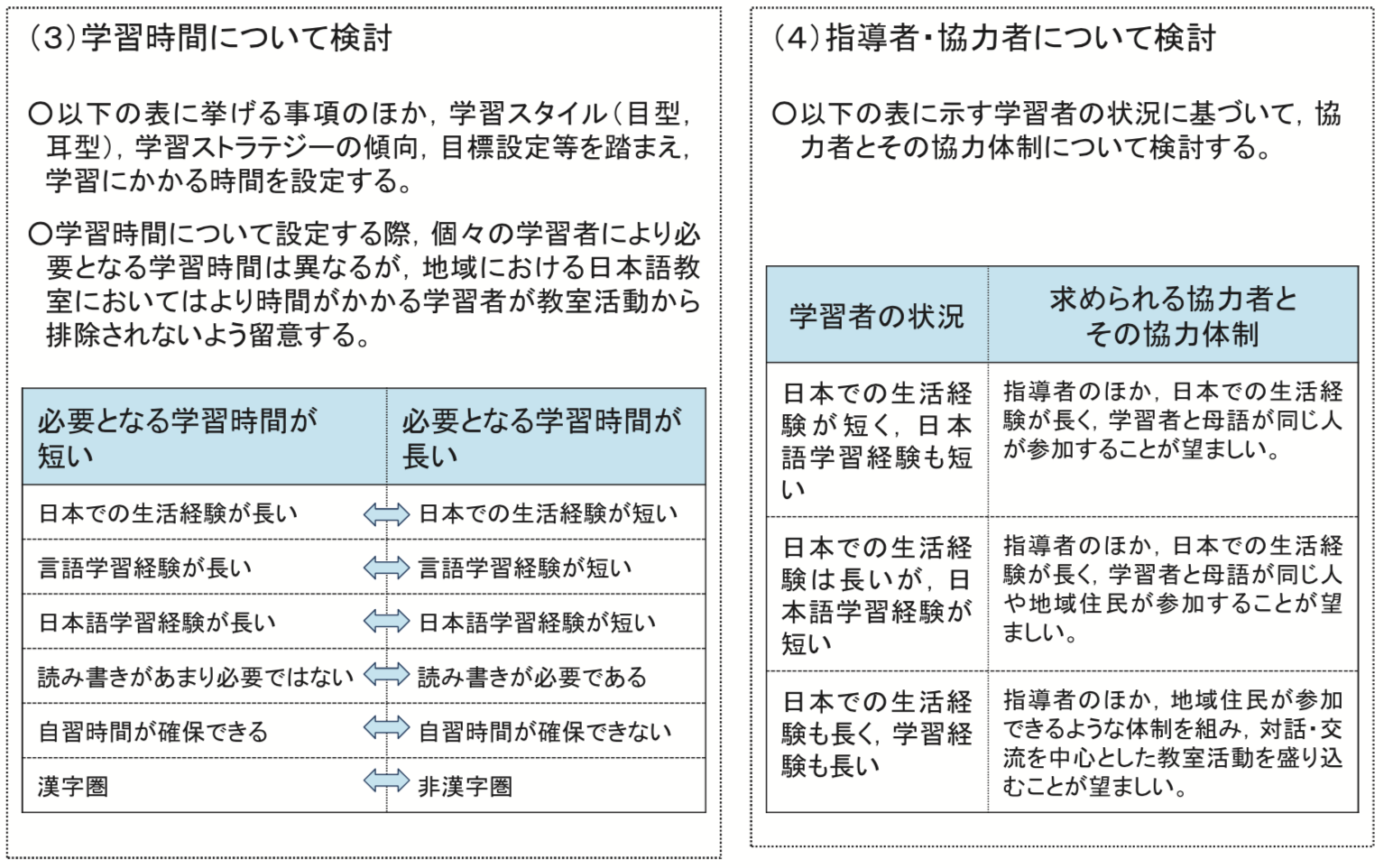「標準的なカリキュラム案」は、2010年から2013年にかけて文化審議会国語分科会に設置された日本語教育小委員会が、外国人が日本社会の一員として日本語を用いて円滑に生活を送ることができるよう、「生活者としての外国人」に対する日本語教育の内容・方法について計画的な検討を行い、順次取りまとめたものです。