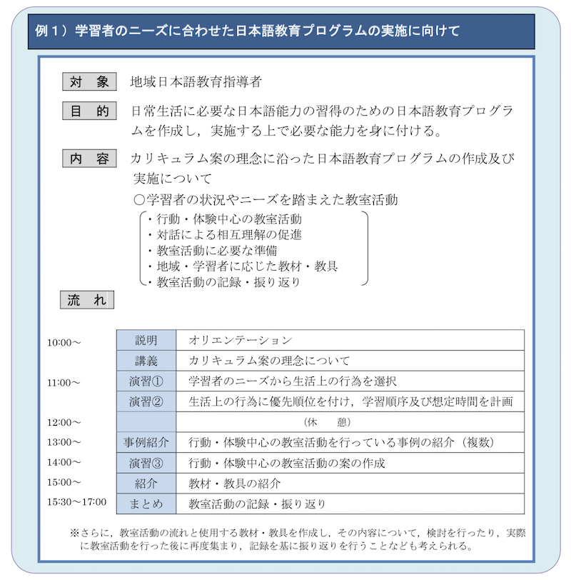 ここでは、研修プログラムの例として、4つのケースが挙げられています (p.44-p.47) 。以下にそのうちのひとつを転載します。