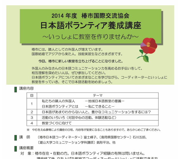 - 地域の日本人ボランティアに多文化共生や日本語教育の基礎を知ってもらう