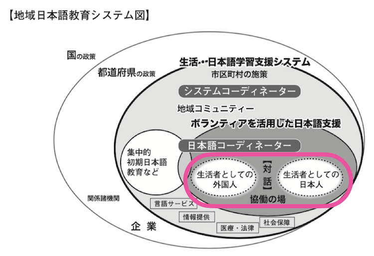 こちらの図 (p.8) にもあるように、地域の日本語教育は「システムコーディネーター」や「日本語コーディネーター」、そして「日本語ボランティア」で成り立っています。