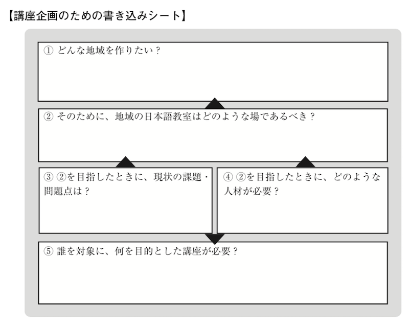 日本語教育の空白地域における「望ましい状態」がはっきりしましたね。これで、取り組むべき「課題」が見えてきたと思います。