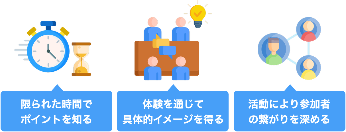 - 方針:限られた時間で、より具体的なイメージをつかめるようにし、参加者同士のつながりも作れるようにする