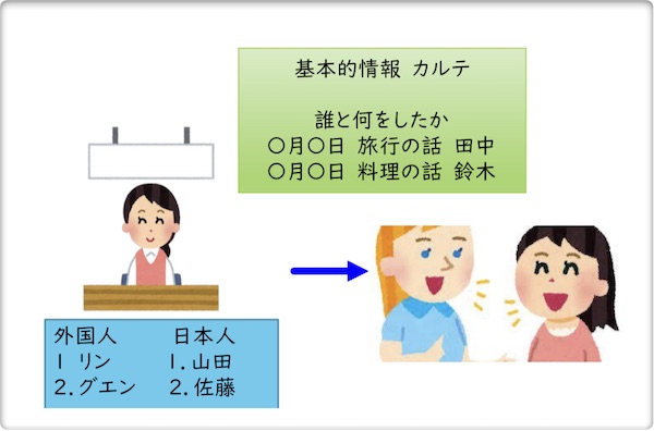 例えば、私が参加している札幌の「窓 (HP)」というボランティア教室は、外国人生活者がカウンターに行くと、カウンターの係の人が、その日参加している日本人ボランティアを割り当てて日本人ボランティアと外国人のペアを作ります。ボランティアは自分の参加したい日に参加すればいいという仕組みです。