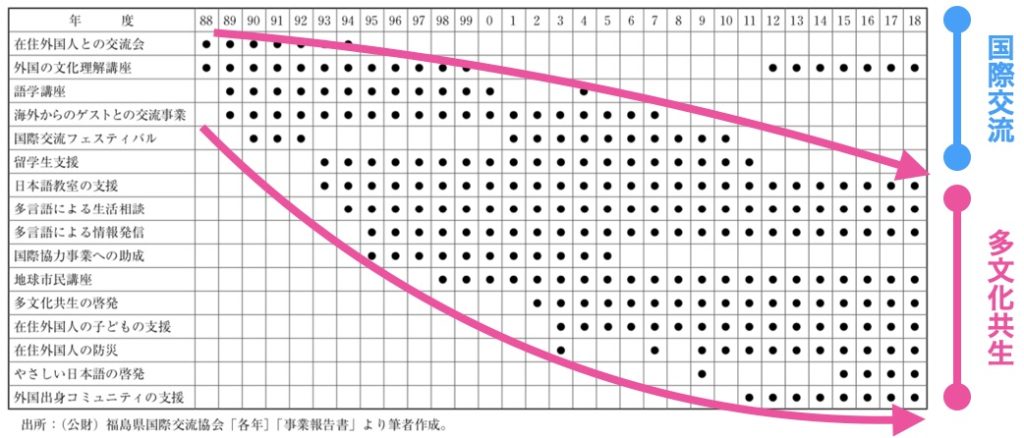 では、次に福島県の国際交流協会の取り組みの変遷について見てみましょう。