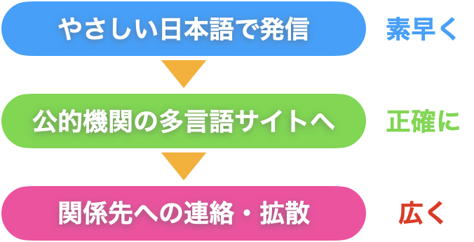 - やさしい日本語で発信し、その後多言語で発信