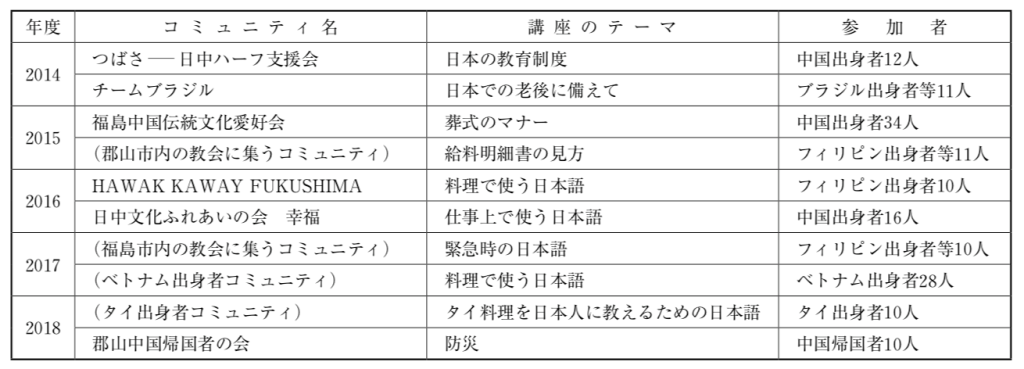 ここでは、福島県での取り組みについて、県の国際交流協会の取り組みと、県内の日本語教室での取り組みを例に挙げて見ていきたいと思います。