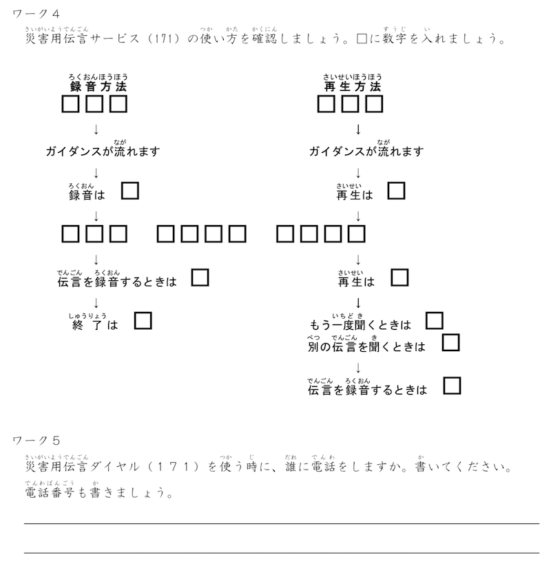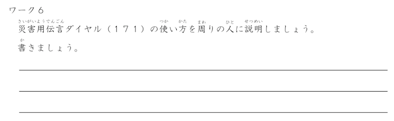 災害の際には家族と連絡がつかなくなることもありますので、災害用伝言サービスの使い方を知ってもらおうと思いました。また、災害についても知ってもらい、話をする機会を作りました。